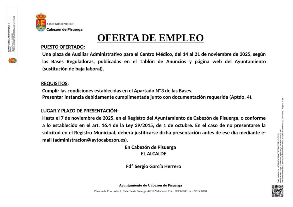 Oferta de empleo: Una plaza de Auxiliar Administrativo para el Centro Médico Leer más »