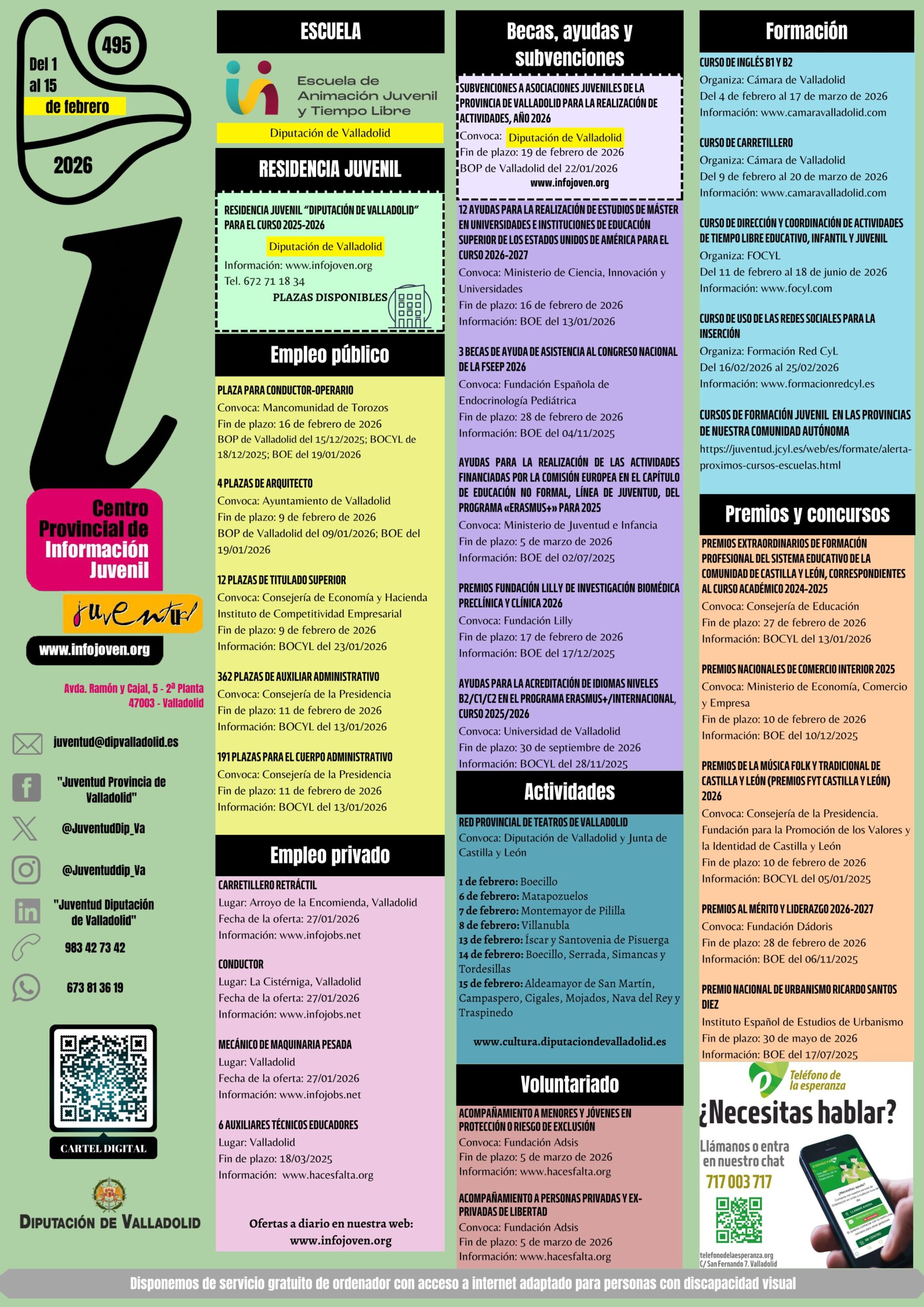 Infórmate de: Empleo público, empleo privado, formación premios y concursos, becas ayudas y subvenciones, actividades y voluntariado.