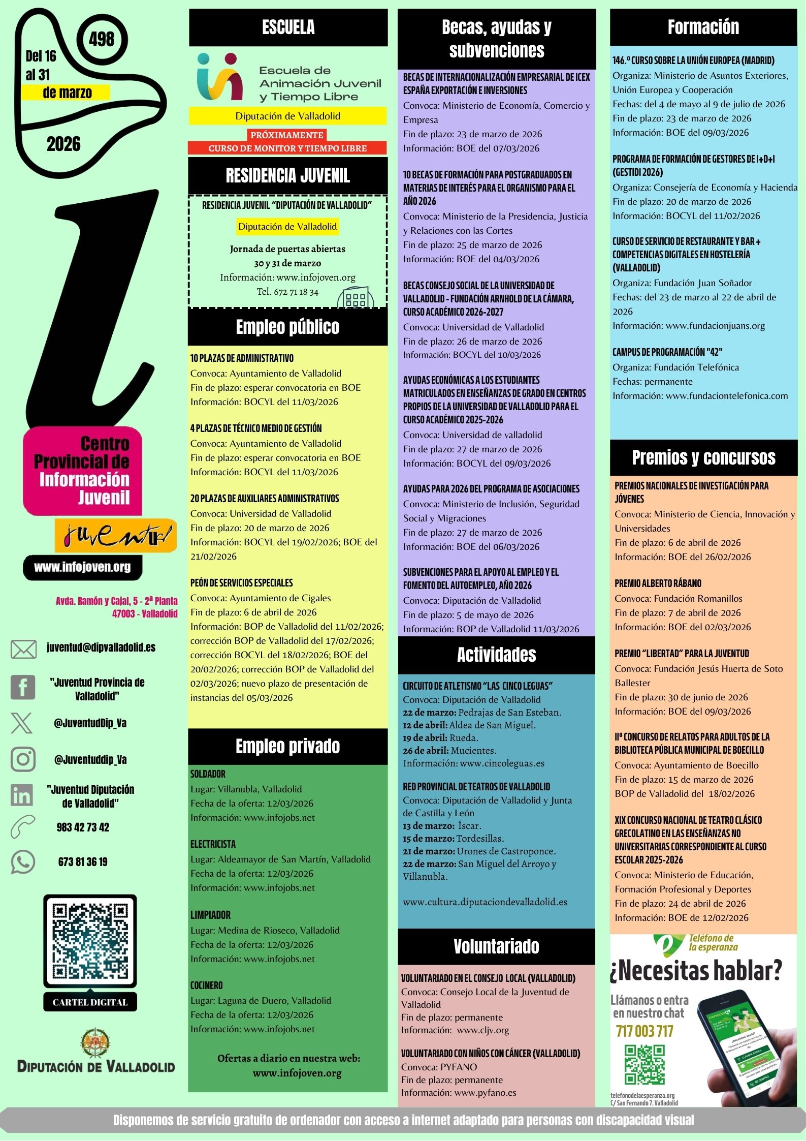 Infórmate de: Empleo público, empleo privado, formación premios y concursos, becas ayudas y subvenciones, actividades y voluntariado.