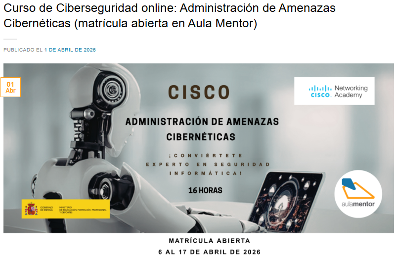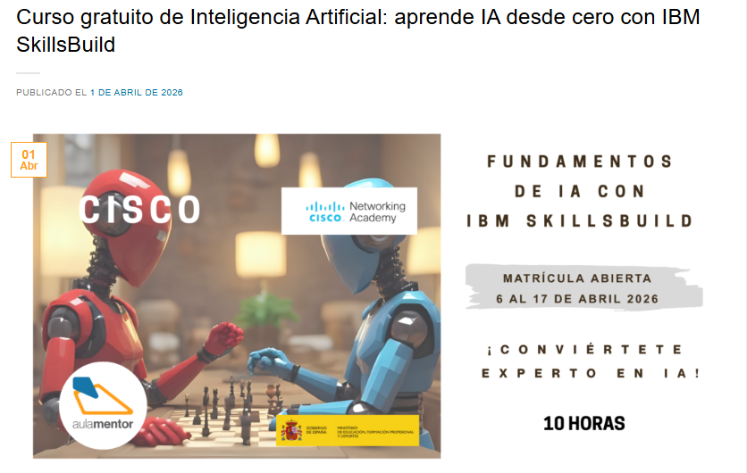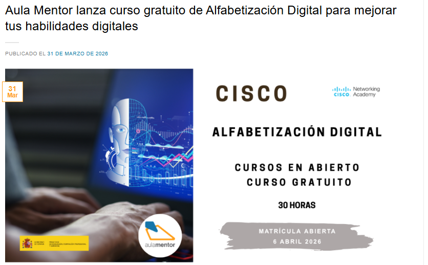 ¿Buscas formación online gratuita, flexible y de calidad? En Aula Mentor lanzamos una nueva convocatoria de cursos en abierto para abril de 2026, pensada para mejorar tus competencias digitales y profesionales sin coste.