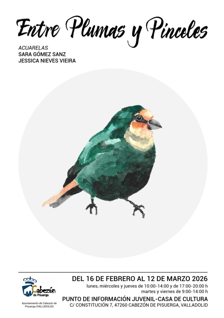 Del 16 de febrero al 22 de marzo puedes visitar la exposición «Entre Plumas y Pinceles» en el Punto de Información Juvenil- Casa de Cultura.
