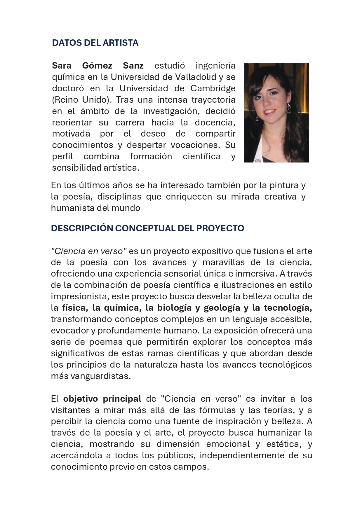 «Ciencia en verso» es un proyecto expositivo que fusiona el arte de la poesía con los avances y maravillas de la ciencia, ofreciendo una experiencia sensorial única e inmersiva.